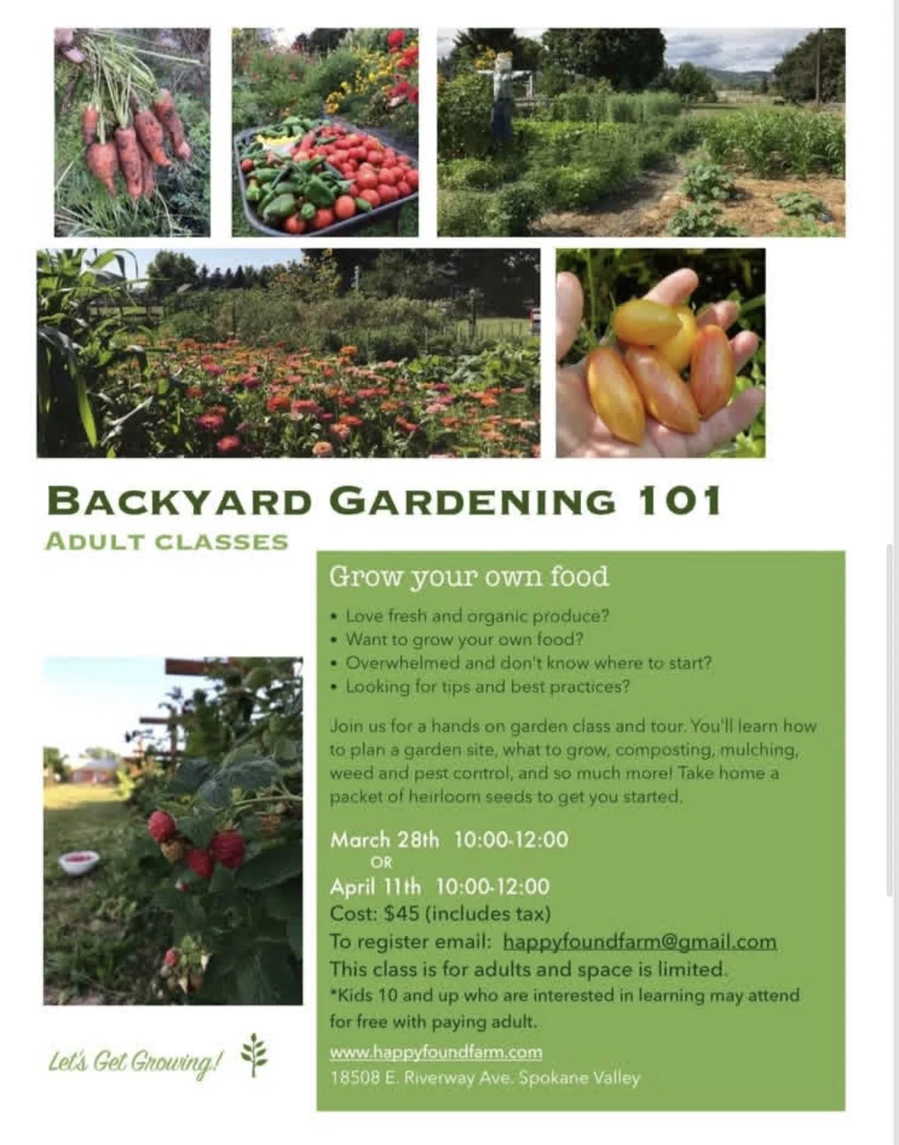 To register: please send an email to happyfoundfarm@gmail.com